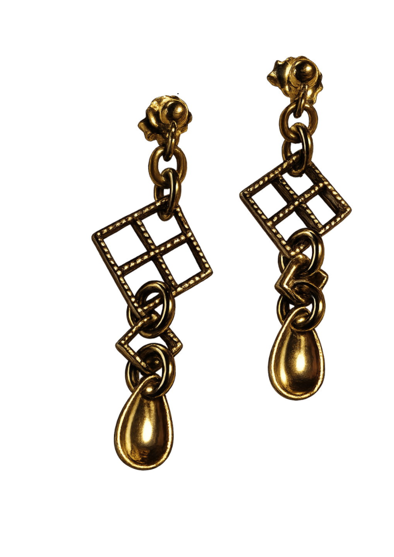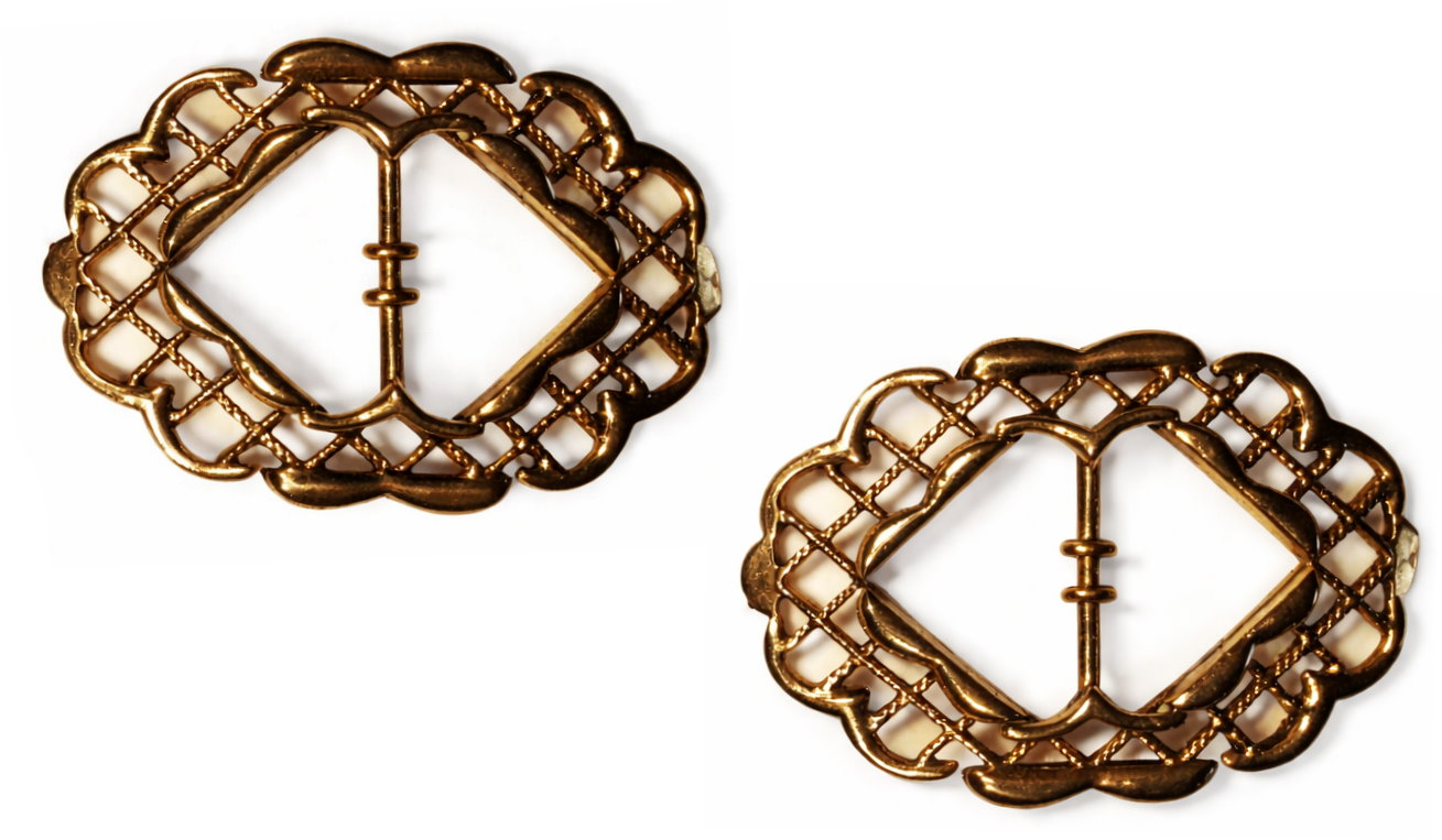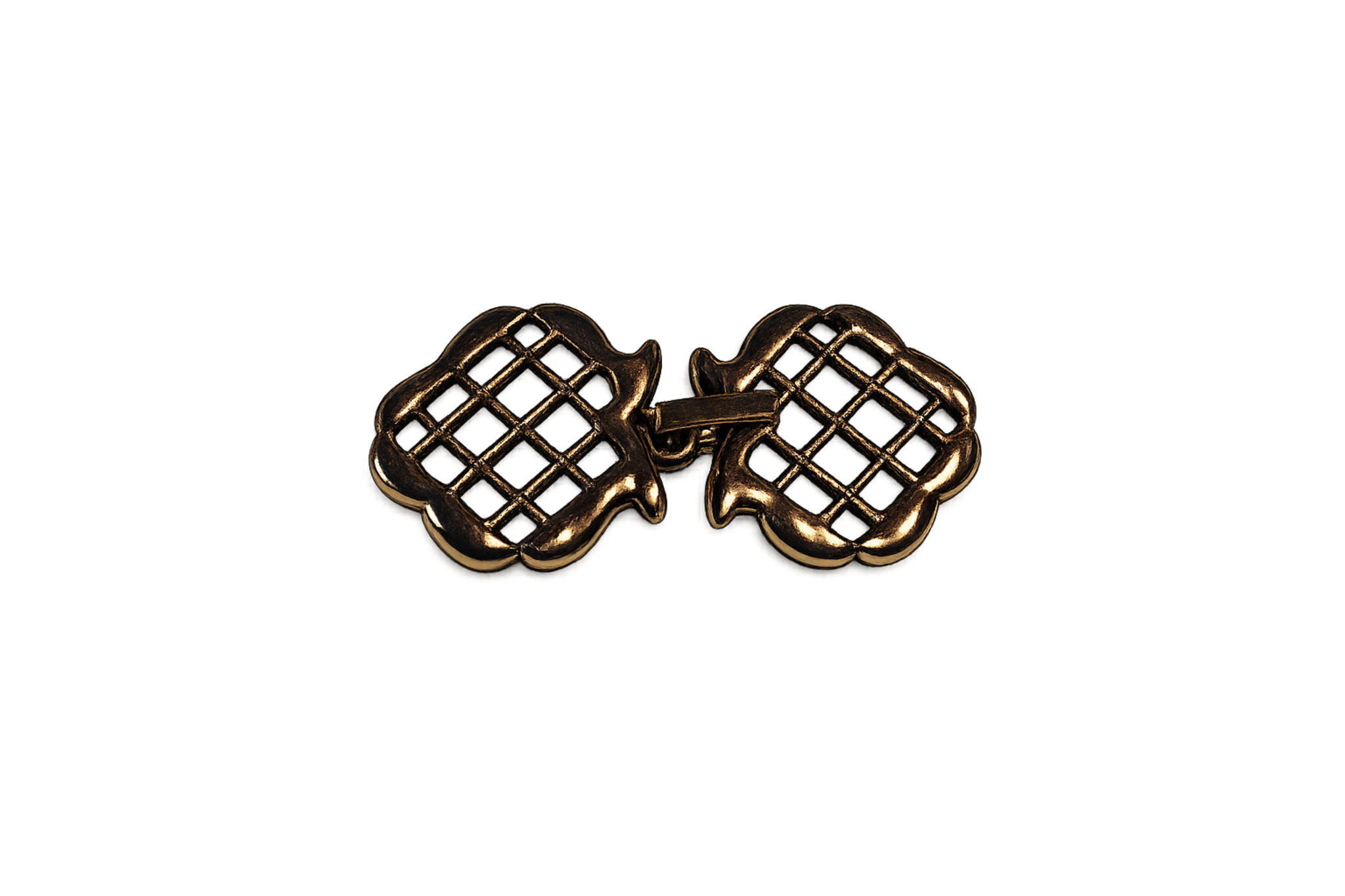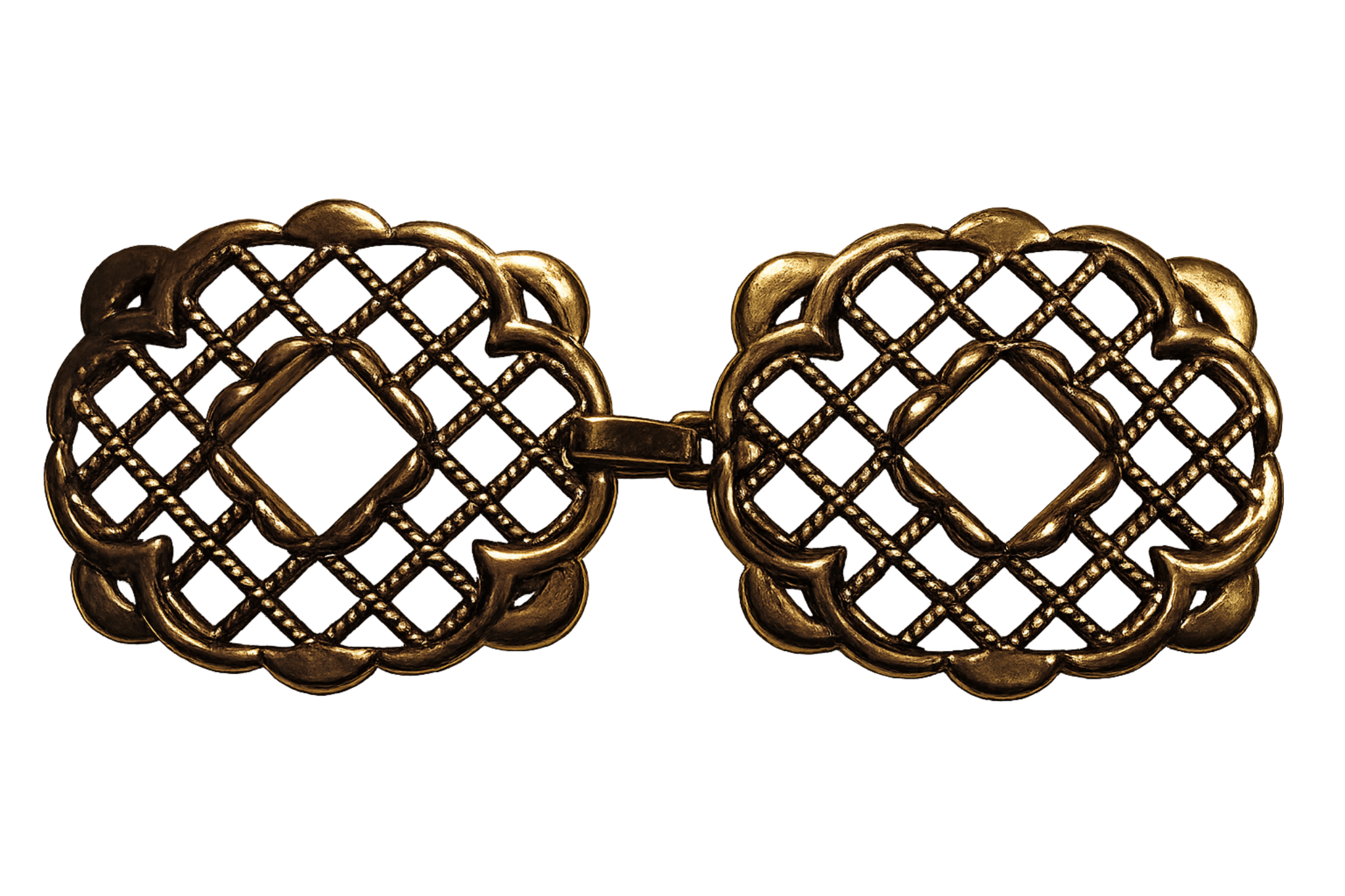 Draktsmykker i bronse og detaljer som kompletterer uttrykket.